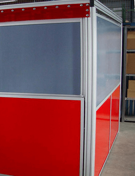 Schweiß- und Laserkabinen dienen dem Schutz vor optischer Strahlung, Funkenflug und thermischer Belastung. Sie bestehen aus stabilen Rahmenkonstruktionen mit speziellen Füllungen (z. B. Polycarbonat, PETG oder Schweißschutzmaterialien), die die Anforderungen der ISO EN 25980 erfüllen.
